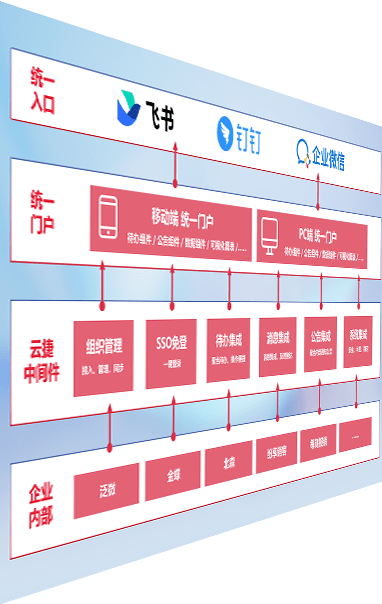 对协作平台提供支持服务,,,支持企业应用与协作平台对接,,,,包含组织同步、、、、消息集成、、、待办集成等。。支持目前主流的协作平台:钉钉、、、、企微和飞书。。。